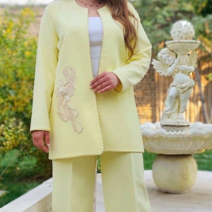 ❇💫همچون ستاره بدرخشید...😍 ❇️نام طرح: فلورا 😍 شامل کت و شلوار ❇️ قابل سفارش به صورت کت تک یا کت و شلوار ✂️جنس پارچه : کرپ مازراتی درجه یک گرم بالا ✅به همراه مغزی دوزی و پنل ✅جلوی کت پرشین کار شده ✅شلوار زیپ و دکمه و کمری دارد 📏سایزبندی : از 38 تا 48 در 3 سایز سایز 1 ( 40 جدول ) مناسب 38 و 40 سایز 2 ( 44 جدول ) مناسب 42 و 44 سایز 3 ( 48 جدول ) مناسب 46 و 48 ✅امکان سفارش سایز 4 مناسب 50 و 52 با صد هزار تومان افزایش قیمت وجود دارد 📏قد کت : حدود 80 📏قد شلوار : حدود 100 ✅قد کار به سفارش مشتری قابل تغییر است 🎨رنگ بندی : 5طرح ✅تضمین کیفیت و دوخت