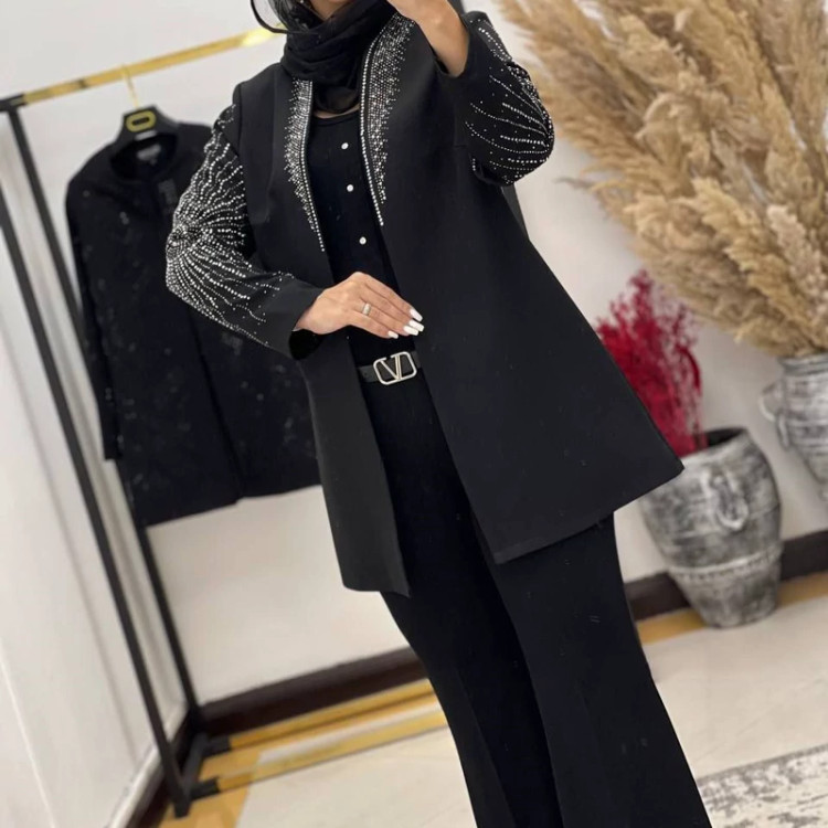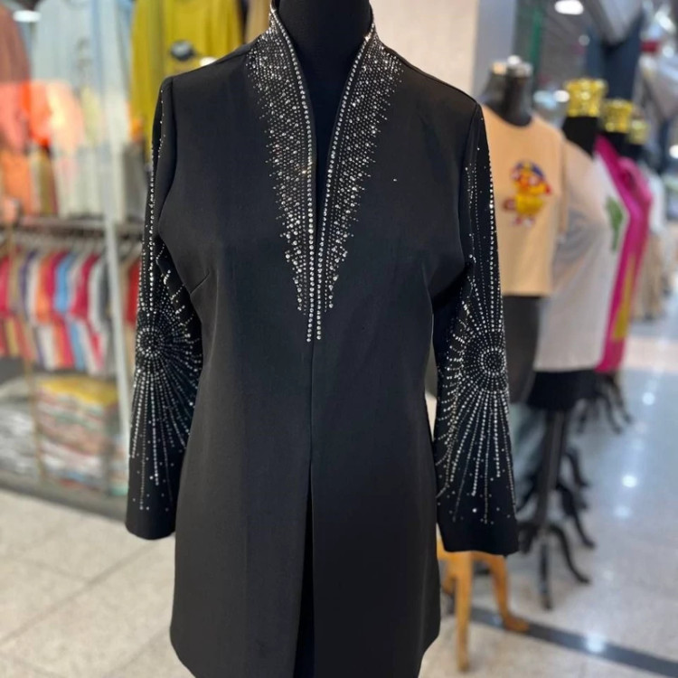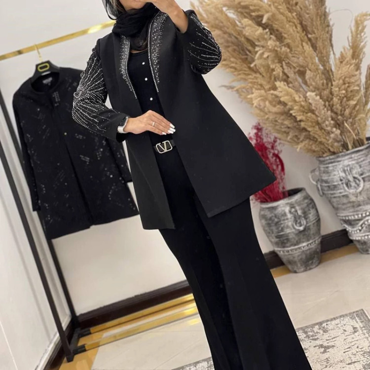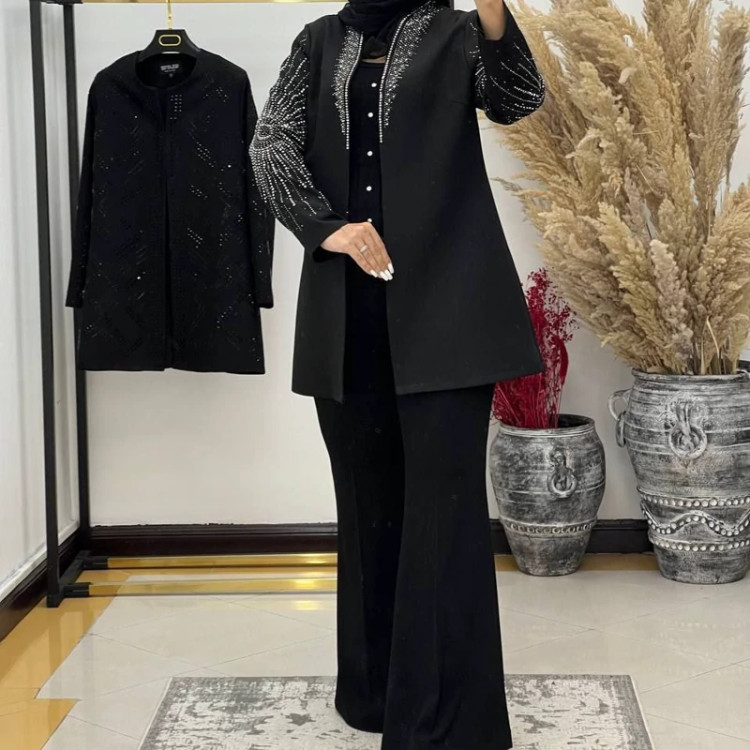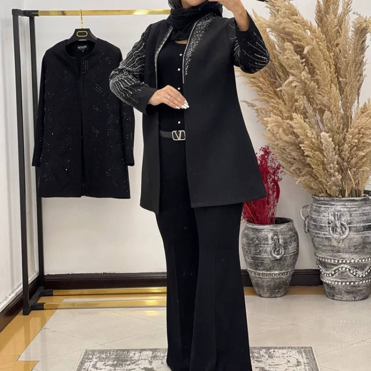 #️⃣شناسه کاربری : #9002 🖋نام : کت مجلسی حدیث 👚جنس : کرپ مازراتی درجه 1 🌈رنگ بندی : مشکی 📏سایزها : 40-42 , 44-46 , 48-50 👈سایز یک دورسینه 100قد کت 78 👈سایز دو دورسینه 108قد کت 80 👈سایز سه دورسینه 116قدکت82 ✅جلوی کار لایه پرشین خورده جهت ایستایی بهتر کت ✅جلوی کت با قزن بسته میشه 🚀ارسال 3 روز بعد