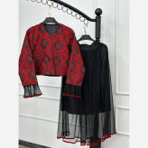 شناسه : #79439 نام : کت دامن یلدایی جنس : کت تافته دامن تور استر دار رنگ بندی : ژورنال سایز ها : فری ✅فری از 36 تا 46 - قد کت حدود 45 - دورسینه حدود 105 - قد استین حدود 58- قد دامن حدود 95 - قد استر حدود 70 - کمر کشی وتا حدود 110 کشسانی دارد - پشت کت مشکی ❌ارسال از 28 ابان❌