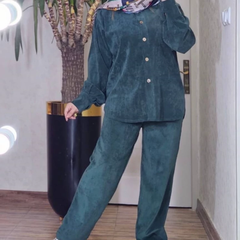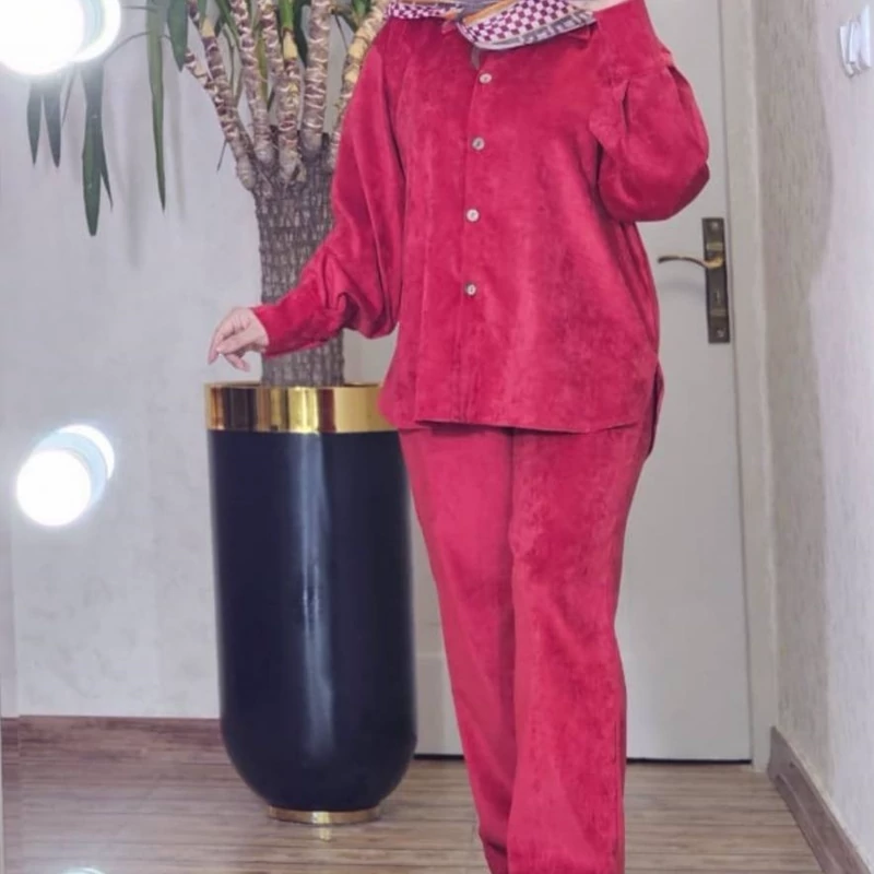 ست تونیک وشلوار ارنواز مخمل کبریتی سایز36تا46