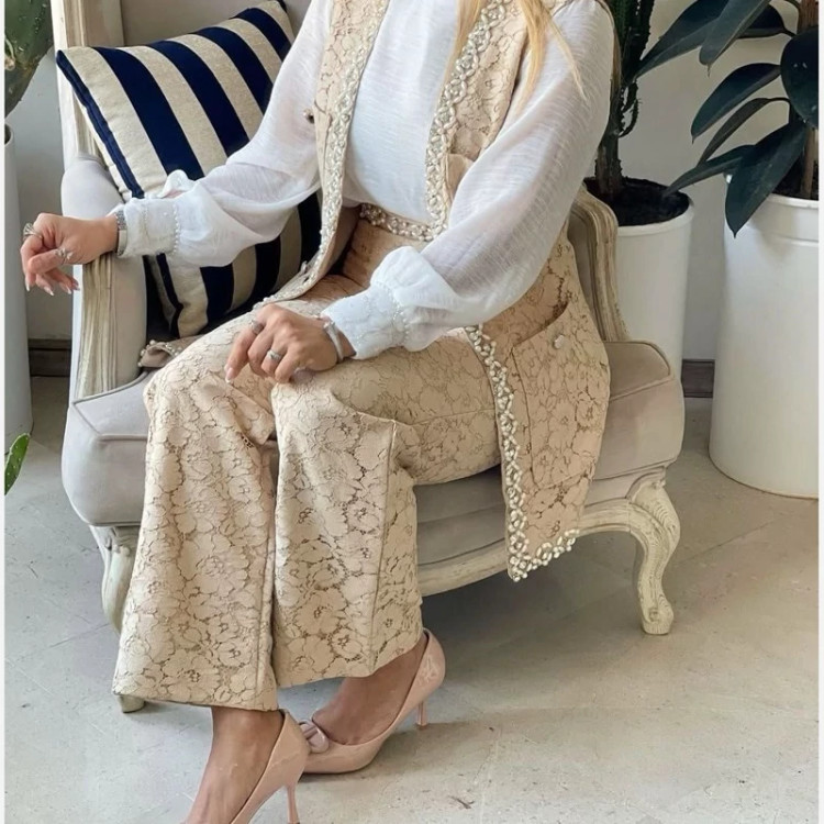 ست وست و شلوارگیپور بار بارا سایز 38 تا 48 طبق اندازه توضیحات