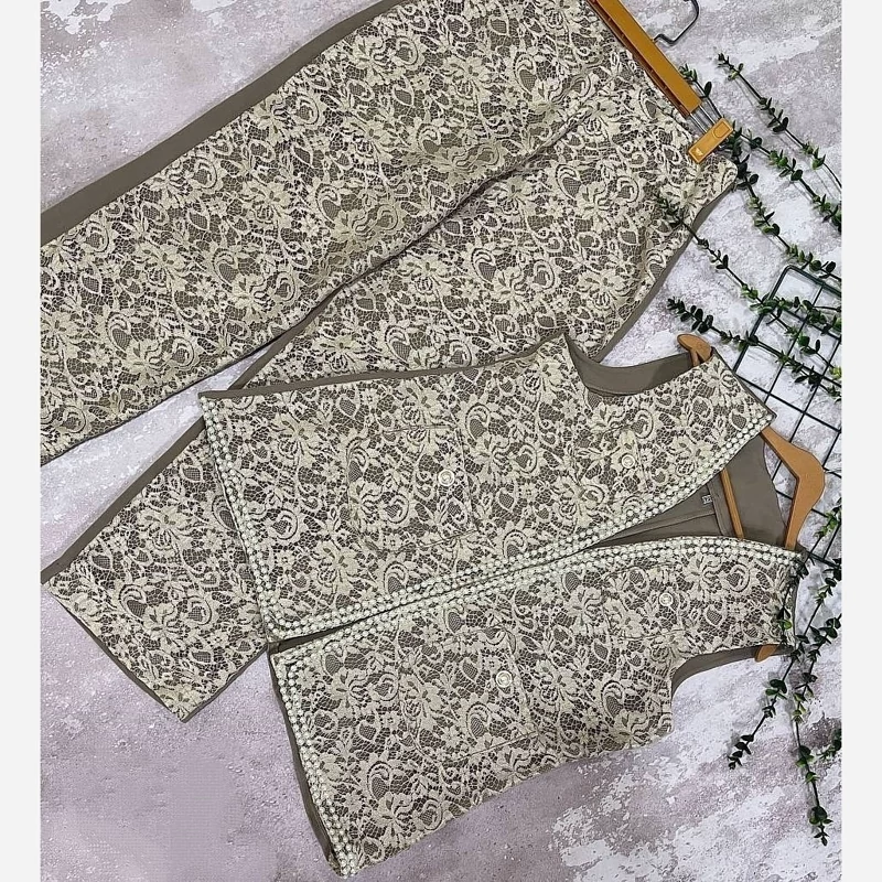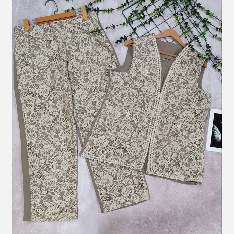 ست وست و شلوارگیپور بار بارا سایز 38 تا 48 طبق اندازه توضیحات