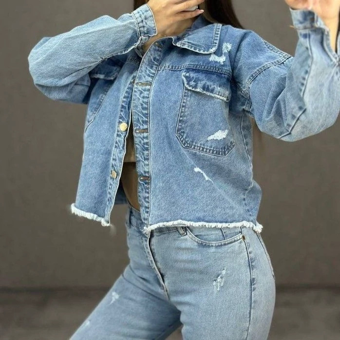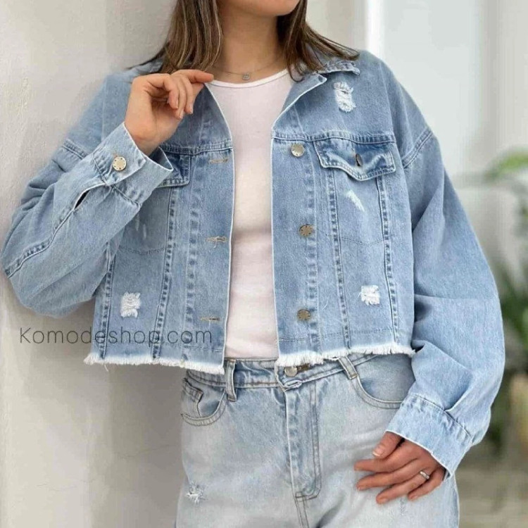 🆔 شناسه : #92352 👚نام : کت ریشدار کوتاه 👗کوتاه 🧵جنس : جین 🖌 رنگ بندی : آبی - آبی برفی - سرمه ای - یخی - ⚜️ سایز ها : L - XL -